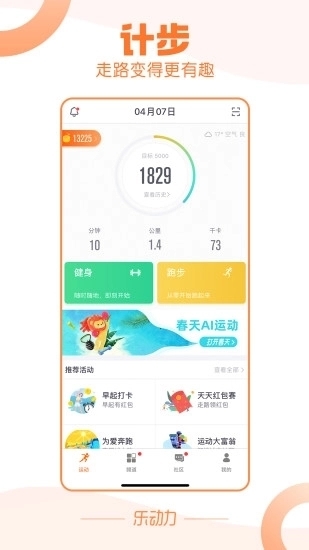 乐动力是一款专注于运动健康管理的智能应用,通过自动计步、运动记录、健身课程、健康数据追踪等功能,帮助用户科学管理日常运动与健康状态。软件以“让运动更简单、让健康看得见”为理念,结合AI算法与社交激励,打造全民适用的运动健康平台。