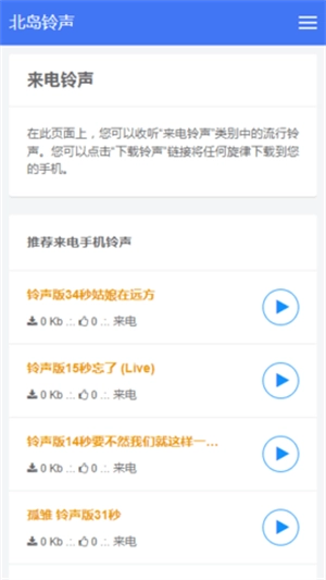 4、热门排行:呈现每日及每周的热门铃声榜单,助你发现当下最受大众喜爱的铃声。