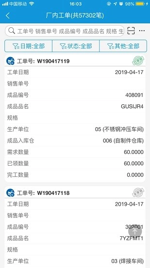 【新增功能】:现在支持通过在单据左侧滑动的手势,呼出类似抛转操作的快捷菜单。目前该功能覆盖的单据类型包括:销售订单、出货通知单、采购订单、采购验收单、采购收货单、厂内工单、领料申请单、合并领料单、入库通知单、生产入库单等。