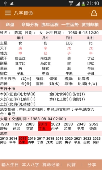 2、每日运势服务:涵盖每日、每周、每月及年度运势,涉及财运、事业运、健康运等多个维度,为用户的日常行事与决策提供参考依据。