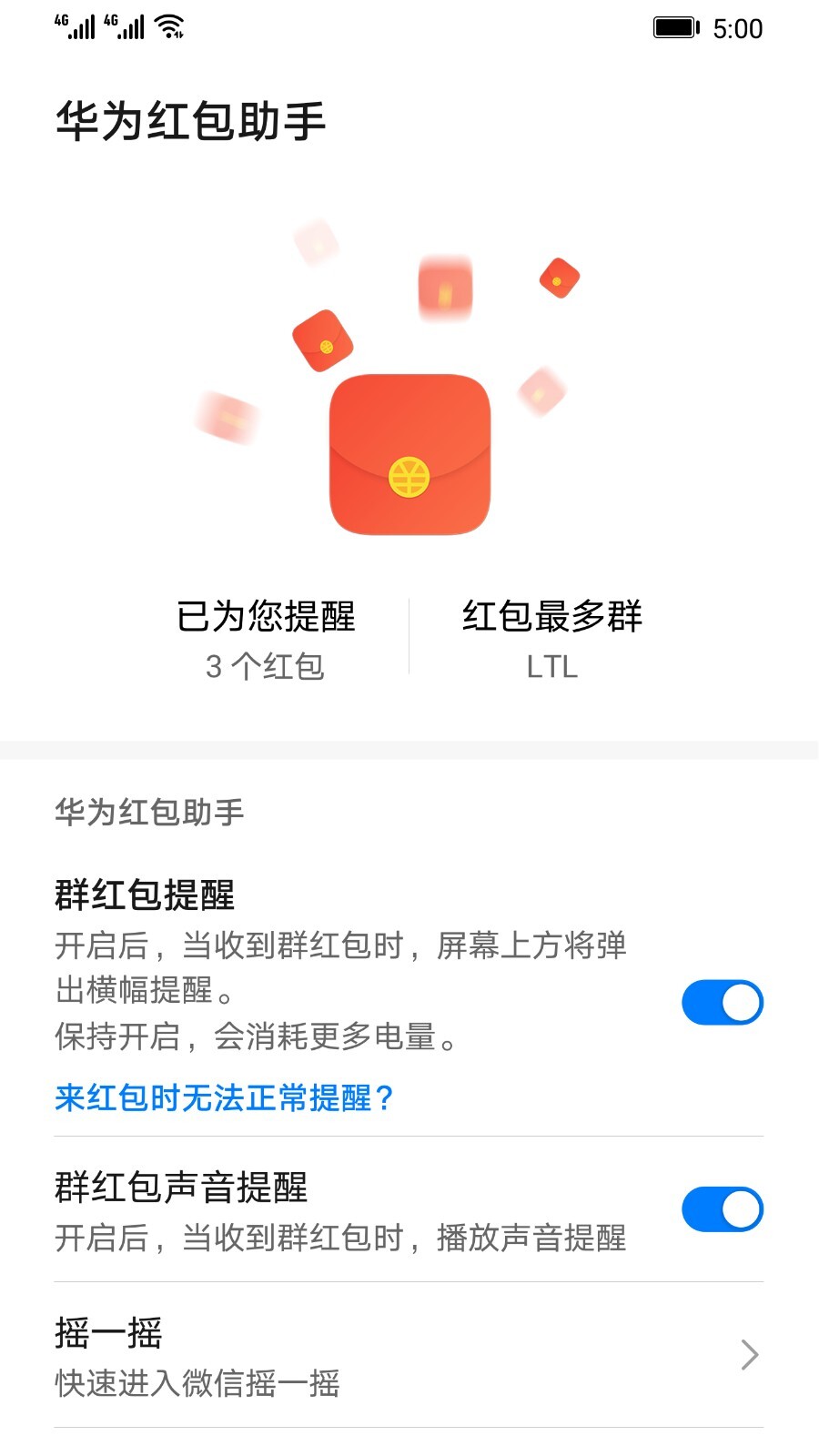 独有的“红包来了”语音提醒极具辨识度,即使在嘈杂环境中或手机处于锁屏状态,也能第一时间吸引用户注意。语音提醒可自定义开关。