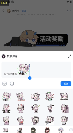 4、用户能够在社区里交流创作,分享游戏体验、玩法心得和其他动态,像创作同人插画、漫画或者同人文来分享都可以。发布帖子的形式很灵活,图文、纯文都没问题,甚至还能使用表情包(社区内已准备了丰富的表情包素材,可直接选用)。