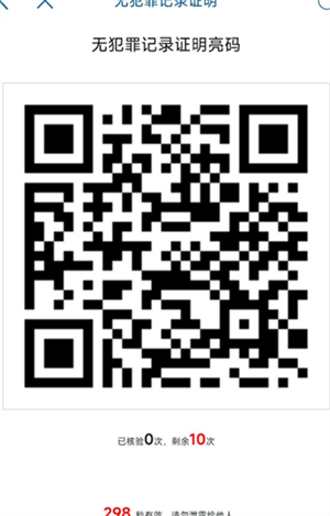 9、核验:点击“无犯罪记录证明”进入证明核验页面。(需注意,核验服务仅限使用10次,若10次使用完毕,将无法继续使用该服务)