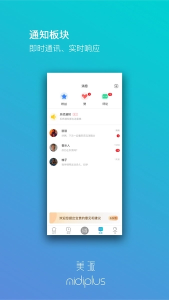 美派音乐app官网版是一款为音乐爱好者量身打造的乐器控制与社交软件,功能十分强大。用户通过蓝牙连接电子乐器后,就能对乐器进行调整。此外,软件还整合了丰富的音乐社区和课程资源,用户可以自由浏览所需课程,轻松获取更多知识,还能与其他用户交流,从而掌握更多技巧。