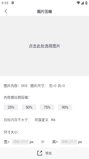 3、图片压缩功能:支持比例压缩与自定义压缩两种模式,提供丰富的压缩自定义选项,在进行内存压缩的同时,还能对图片的长宽像素进行调整。