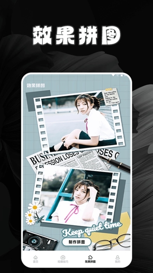 3、一站式效果拼图功能堪称拍摄必备神器,操作十分便捷。