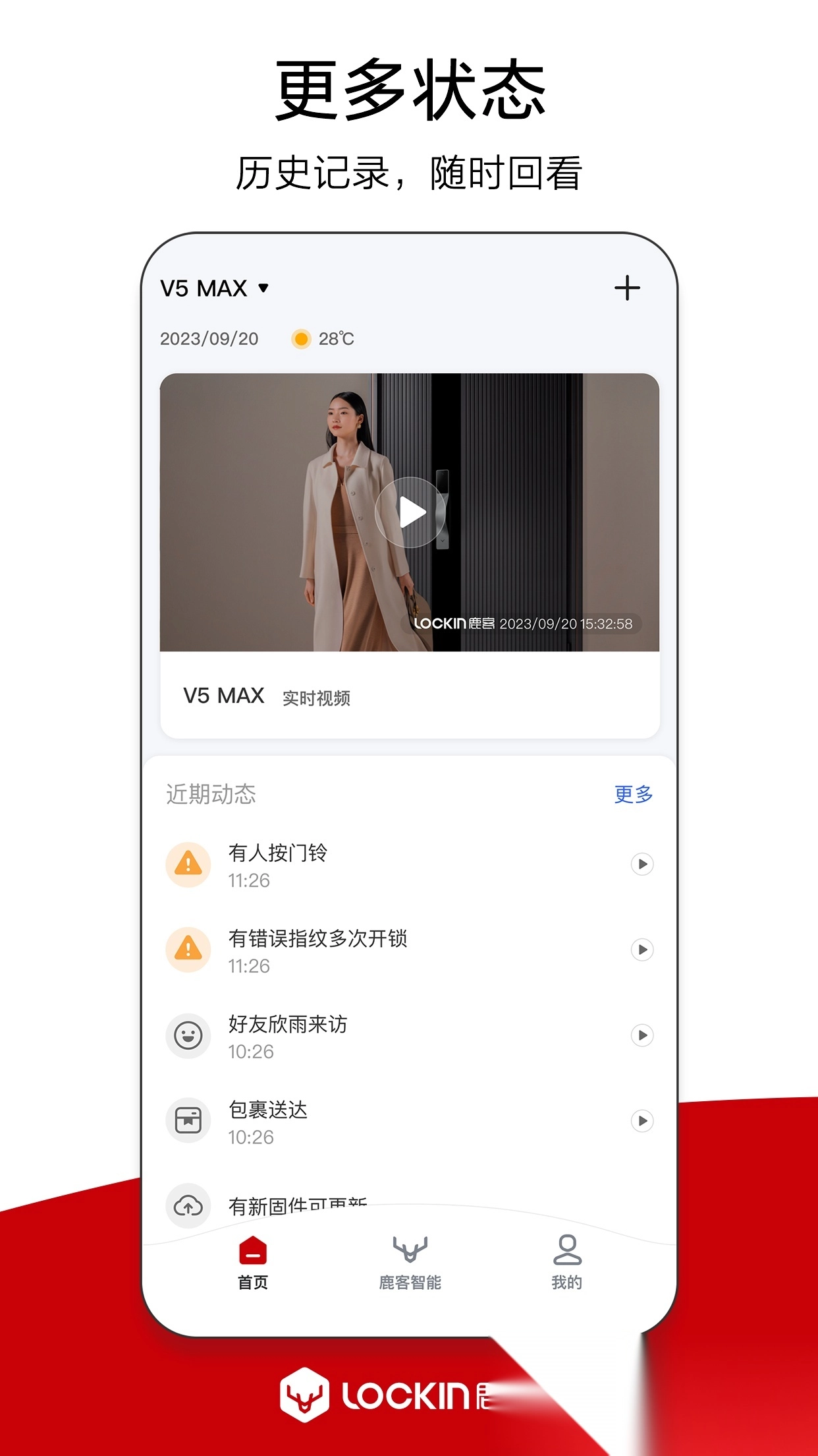 可直接查看门前监控画面,还能回放过往录像,为您和家人的安全多添一重保障。