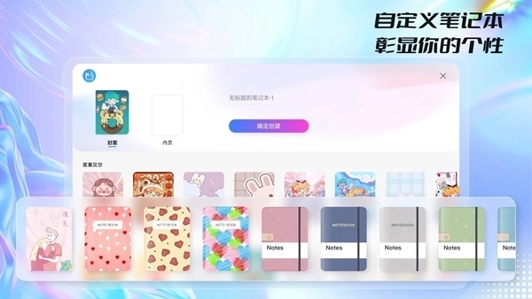 创建笔记本:打开应用后,点击主页右下角的“+”号或“新建笔记本”按钮。您可以从丰富的封面库中选择喜欢的封面,并设置纸张大小(如A4、B5)和模板(横线、方格、点阵或空白)。