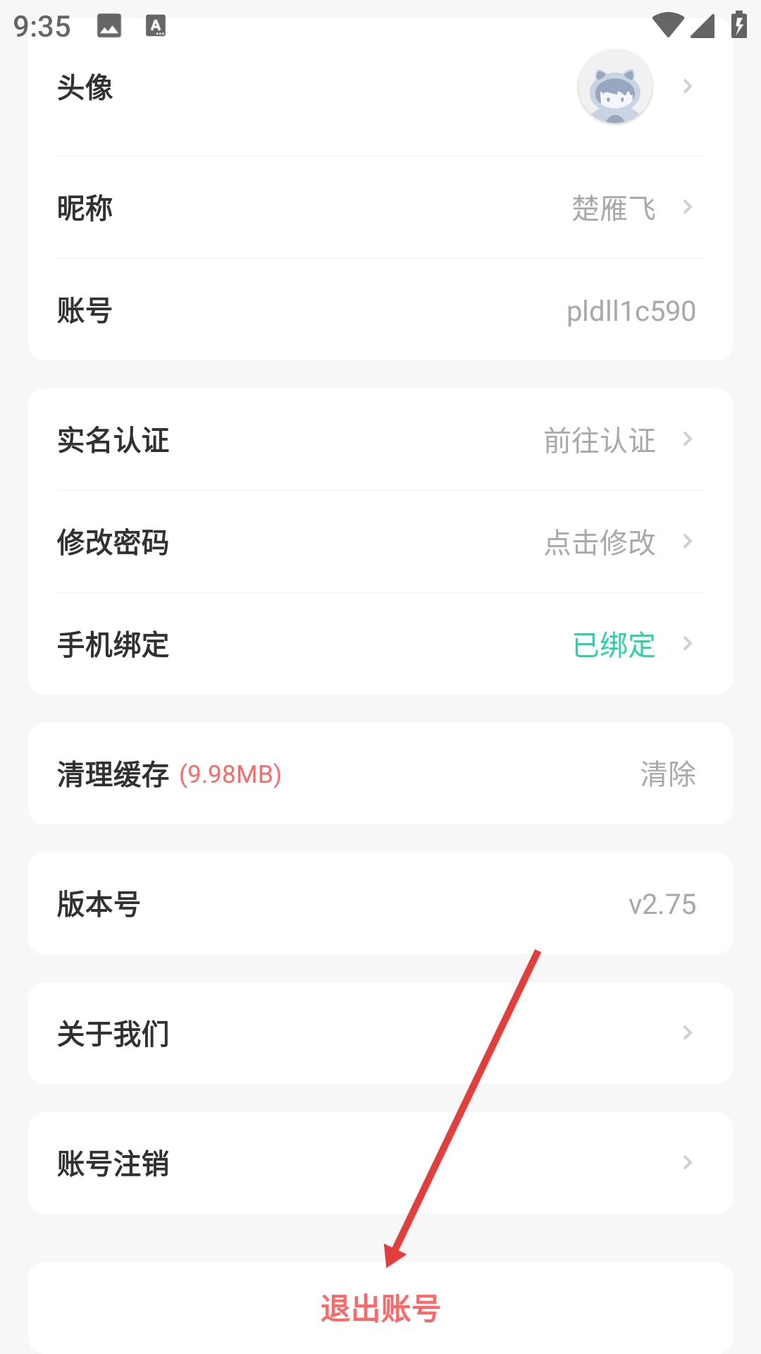 3、在设置页面点击【退出账号】选项,进入登录页面。