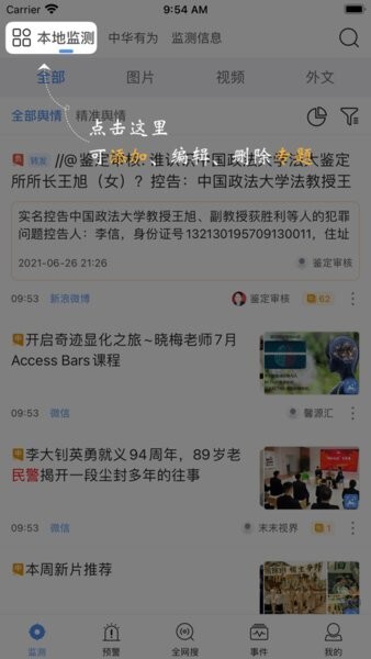 舆情秘书能对舆情进行监控,并且还能去深挖一些话题内容,更是可以对所有的热点资讯进行一个大致的统计,所有的热点新闻你能抢先知道,并且还能切换成专家视角。