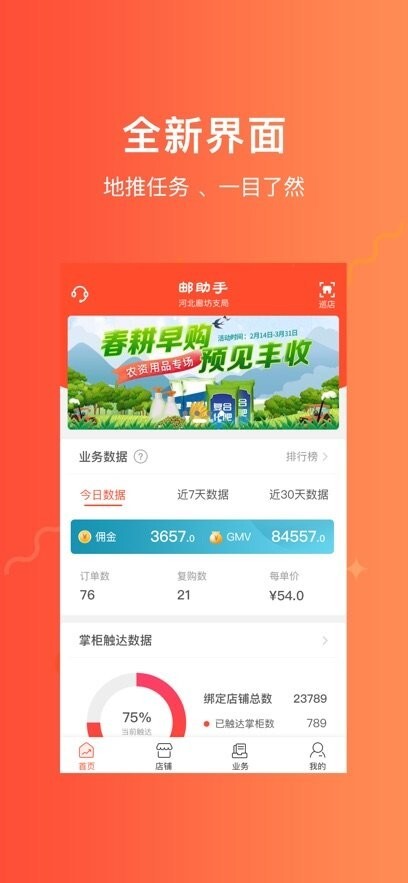 邮助手能够提升邮政工作人员的工作效率,让他们随时查看自身工作任务,解决各类互动不一致的问题。对于邮政地推人员而言,借助邮助手可以实时掌握渠道质量,制定巡店计划,开展分级网格化管理,通过访销直接下单以提升访销业绩,还能查看掌柜分享记录来推动代购业绩。同时,邮政也能通过邮助手清晰了解地推人员对渠道的拜访与维护情况。