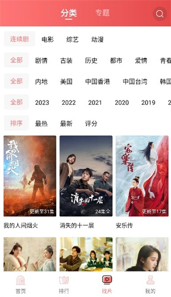 3、分类清晰明了,用户在观看剧集时,能够选择古装、历史、爱情、青春等不同类型的分类,同时也提供国产剧、美剧、韩剧等地区类别的选项。