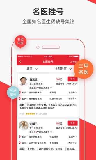 4、名医直通车:汇聚全国3000余位知名专家的稀缺号源,包含国医大师、全国名老中医及各省级名医的稀缺号,帮助患者便捷预约、轻松看诊名医。