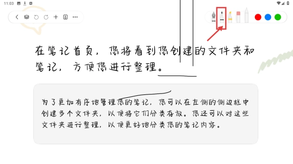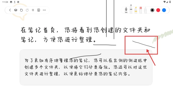 3、使用画笔工具,在笔记内容区域绘制线条,完成笔记标注操作。