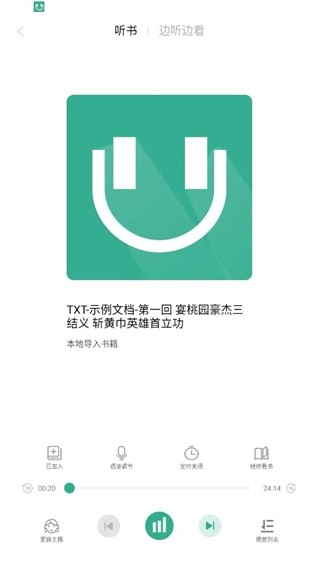 3、之后在书架打开导入的文档即可开始听书。