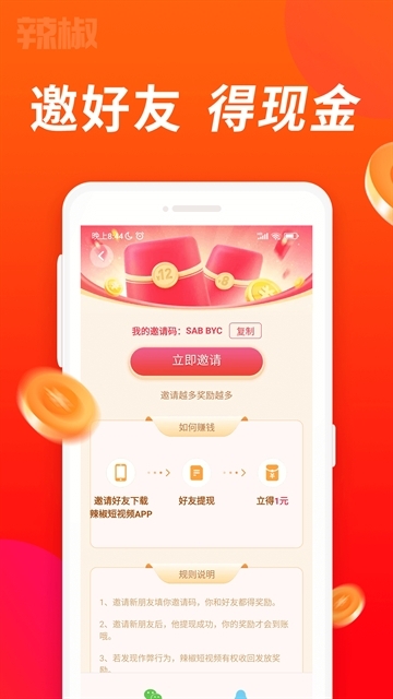 辣椒短视频是梵喆(深圳)传媒科技有限公司推出的短视频社交平台,支持Android系统,覆盖搞笑、生活、科技、时事等多元领域。用户可通过观看视频、完成任务、邀请好友等方式赚取金币,兑换现金提现至微信或支付宝,实现“边刷边赚”。平台还提供智能剪辑、滤镜特效等创作工具,助力用户轻松制作高质量短视频。