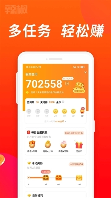 任务体系:包括日常任务(如观看视频、点赞评论)与挑战任务(如参与话题活动),完成任务可获得金币奖励。