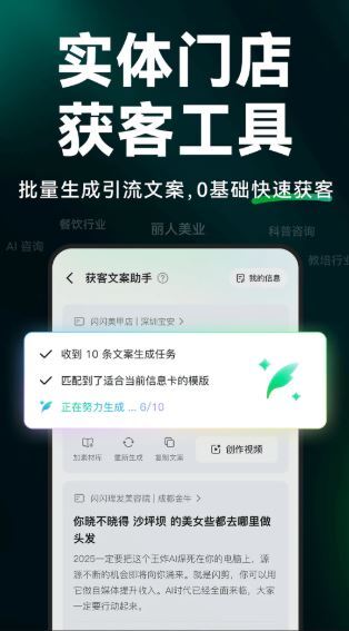 4、该软件还拥有一键编辑视频片段、自动匹配营销素材与文案等实用功能。用户完成创作后,可通过一键预览功能,迅速定位到感兴趣的视频片段,这不仅显著提升了创作效率,还增强了创作的精准度,从而帮助用户更有效地开展短视频营销工作。