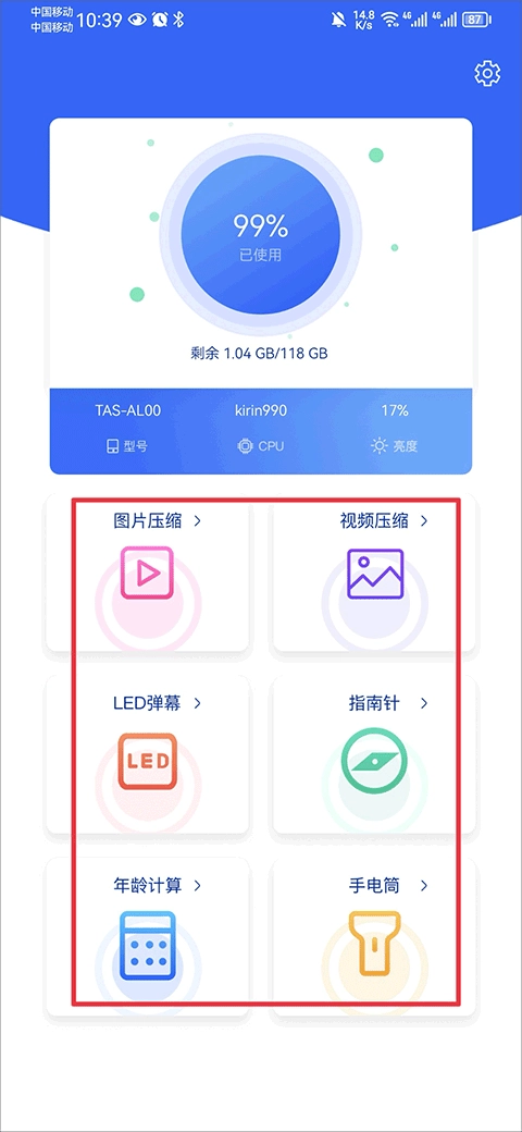 1、采用极具人性化的操作界面,相关用户能够在此开展视频压缩、LED屏幕调节、指南针使用、年龄计算、手电筒开启等一系列操作。