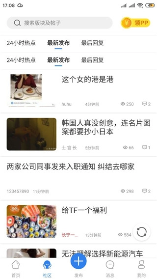 3、点击社区一栏,可以查看论坛上网友发帖