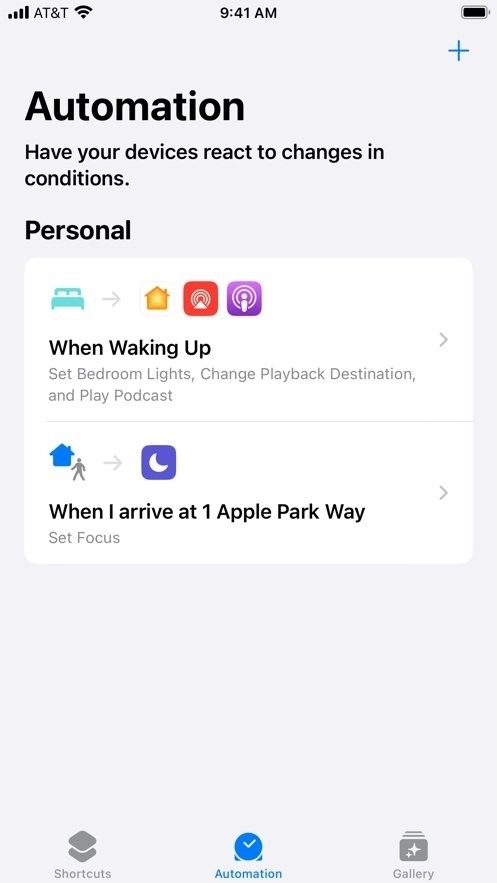 点击底部“自动化”选项卡,点击“+”新建自动化