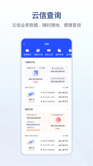 云信业务及明细,融资申请及进展,多维度可视化清晰呈现