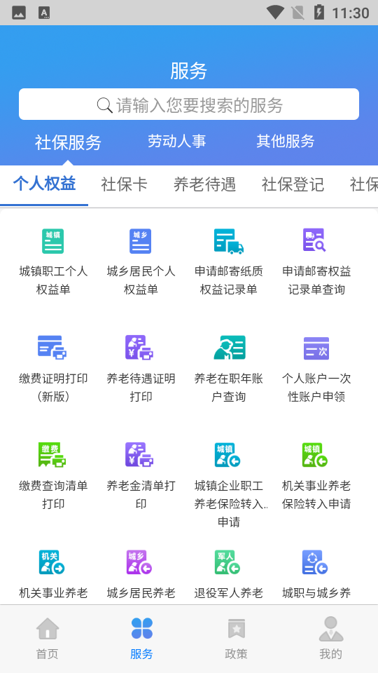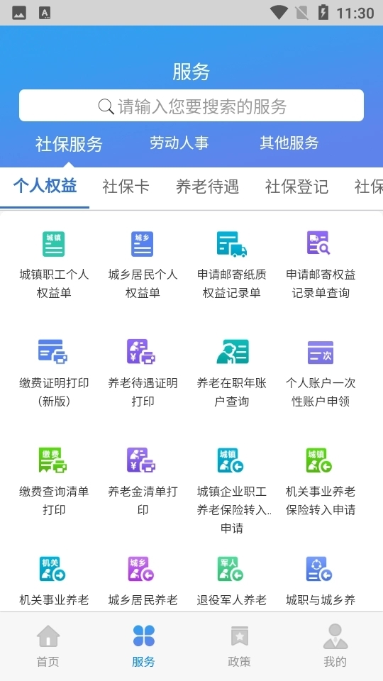 登录APP后,进入“社保查询”或“个人权益”页面。