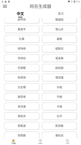 2、采用最先进的算法,能够生成近乎无限多的网名,让用户拥有丰富多样的风格与类型可供挑选;