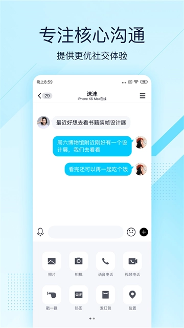 【专注沟通】帮助用户排除花样功能的干扰,将注意力集中于人际交流本身。
