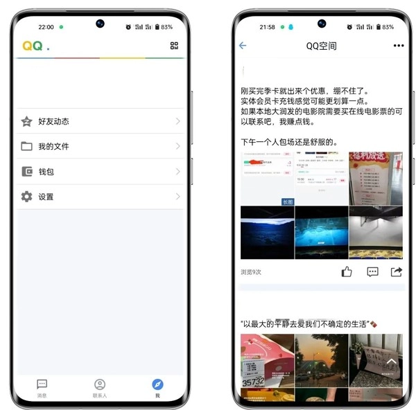 4、基础空间:保留QQ空间入口,可查看好友动态,大幅简化了互动和娱乐玩法。