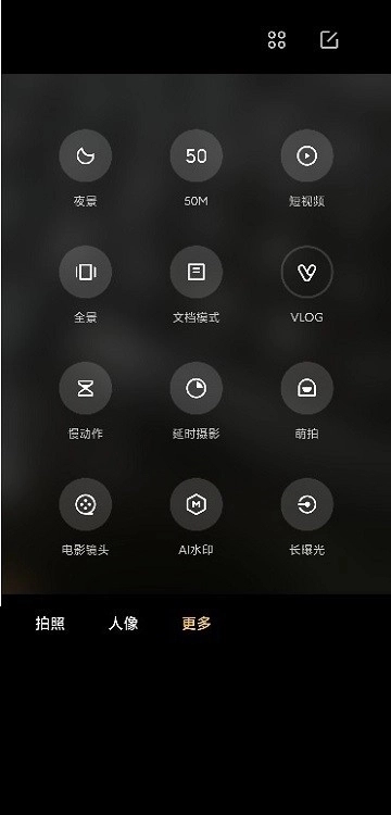 打开小米相机app,点击右下角或底部的“更多”按钮(通常是四个小方块的图标)。