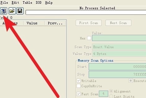 2、打开CheatEngine汉化版,点击如图所示的小电脑图标。