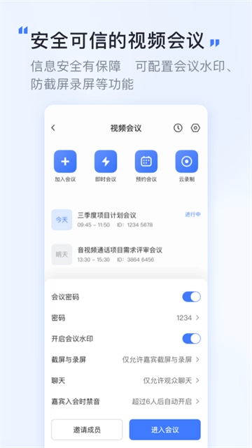1、开会的时候可以进行音视频通话还可以开启网络会议。
