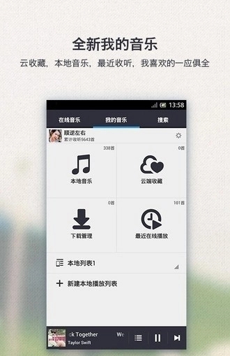 使用上文“怎么添加音乐”中的任意方法,将您从其他平台下载好的本地音乐文件,添加到千千静听的播放列表中,即可享受播放、歌词、音效等功能。