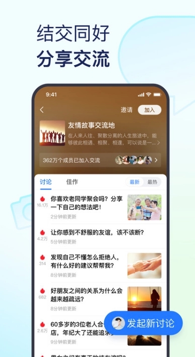 社区内容:各类兴趣主题圈子(如“手机摄影”、“美文共读”、“行摄天下”)、官方发起的创作活动与话题。