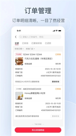 小红书本地商家版配备了实用的订单管理功能,商家能在此体验便捷的订单查看服务,订单明细清晰明了,经营方式直观易懂,助力商家轻松完成订单查看操作。