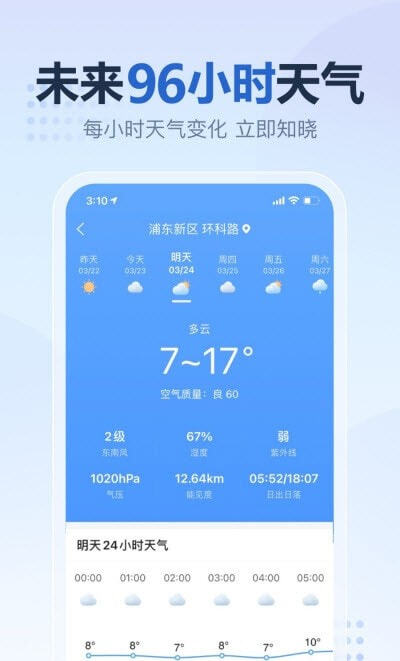 3. 除了温度、湿度、风向等基础常用数据外,还呈现了更为详尽的天气数据。用户能够查看24小时及7天的天气预报,从而知晓未来的天气走向。