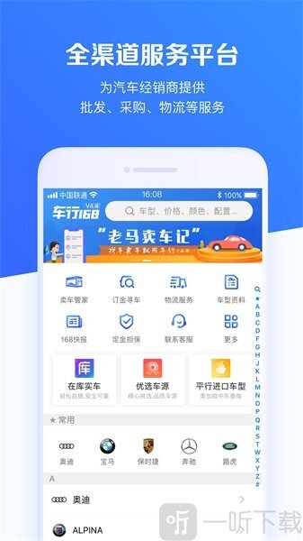 车行168是车行一六八公司精心打造的一款新车供求信息交互平台,该平台针对全国汽车商家和4S店的车源发布和查找需求,高效整合来自全国300个地级市的新车供求信息,全面提供批发、采购、物流等服务,打造覆盖上下游的联络及交易渠道。不仅能帮助上游商家以最快速度批发车源,轻松营销推广,而且还能助力下游商家以最优价格采购车辆,为双方带来更高效、更安全的交易保障。