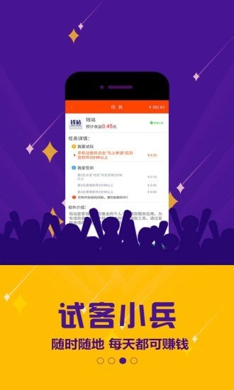试客小兵安卓版是一款做任务赚钱的应用。这款软件功能丰富,用户能通过完成任务来获取收益,时间完全由自己安排,没有任何限制。无论是假期里抽出一天时间,还是利用闲暇时刻,都能轻松赚到不少零花钱,既能打发无聊的时光,又能收获额外收入,想赚钱的朋友们赶紧行动起来吧!