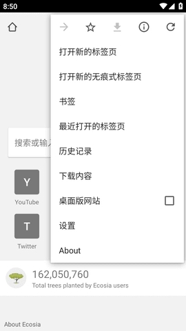 多平台同步:支持登录 Ecosia 账户(邮箱注册)后,在手机 App、浏览器扩展、桌面版之间同步搜索统计和植树进度。