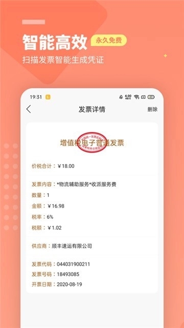 特色功能简介:【发票管理】支持导入进项发票和销项发票,自动生成凭证,并计算当期应交增值税。【固定资产】管理固定资产卡片,自动计提折旧,生成折旧凭证。【往来核销】对客户和供应商的应收应付账款进行核销,实时查看欠款情况。【多端同步】在电脑网页端(www.zj.com)登录同一账号,所有数据自动同步,可以在办公室用电脑记账,外出用手机审批。
