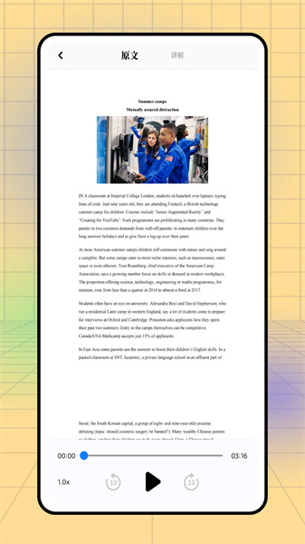 1、提供丰富多样的学习材料,像英语原文报纸、期刊、新闻资讯等都包含在内,覆盖了多个主题与领域,助力学习者拓宽知识的广度;