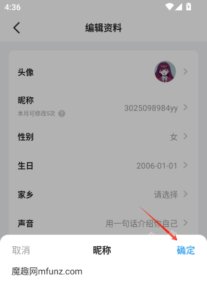 3. 在编辑资料页中,找到并点击“昵称”设置项。
