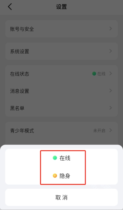 3. 在在线状态设置功能里,用户能够挑选各类在线状态,比如在线、隐身、忙碌等。
