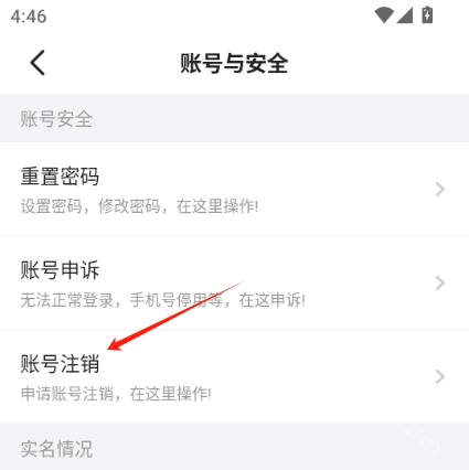 3.在账号与安全页面中,找到并点击“账号注销”。