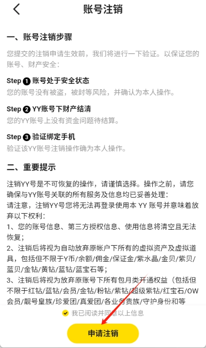 4.然后将我已阅读前面的勾选上,再点击申请注销。