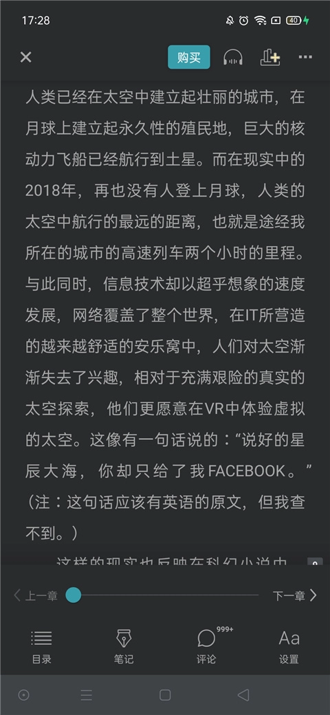 6、在阅读页面也是可以进行一系列的设置的,和其他的阅读软件一样哦。