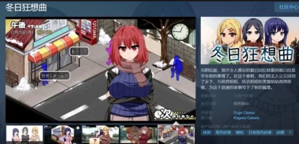 冬日狂想曲是《夏日狂想曲》的正统续作,由Dojin Otome开发,是一款像素风格的恋爱冒险角色扮演游戏。其主流版本包括官方原版、由神乐游戏(Kagura Games)发行的官方中文版,以及针对安卓平台的直装版与中文汉化版。游戏版本持续更新,例如曾发布过V1.05 AI精翻汉化正式版及个人汉化版ver2.16。游戏在Steam平台获得了极高评价,并支持PC与安卓双平台。